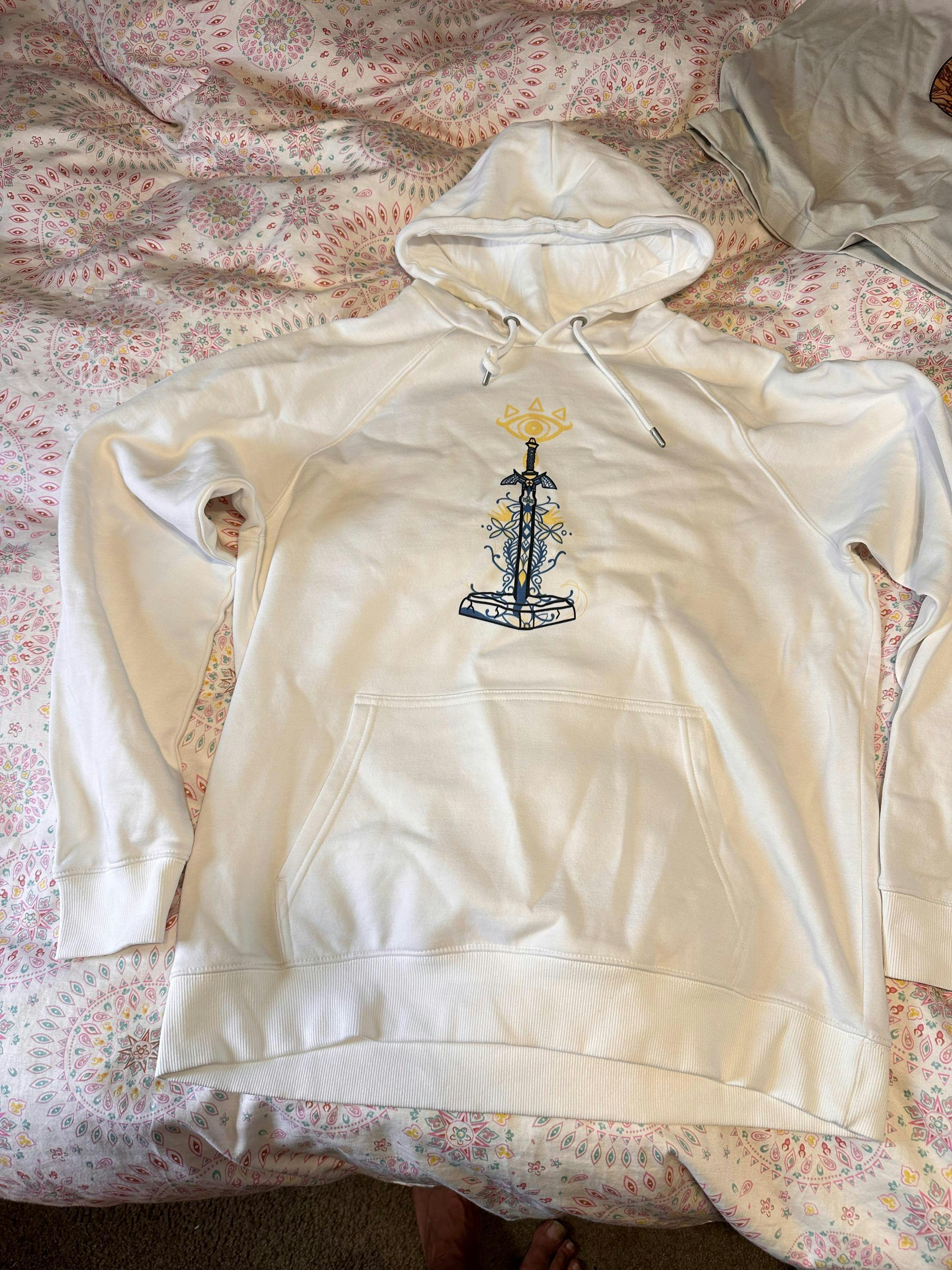Celebrate your love for The Legend of Zelda with this stylish hoodie featuring the iconic Master Sword in the Pedestal of Time, inspired by Breath of the Wild. The design showcases the legendary sword resting in its stone, with mystical Sheikah symbols above.